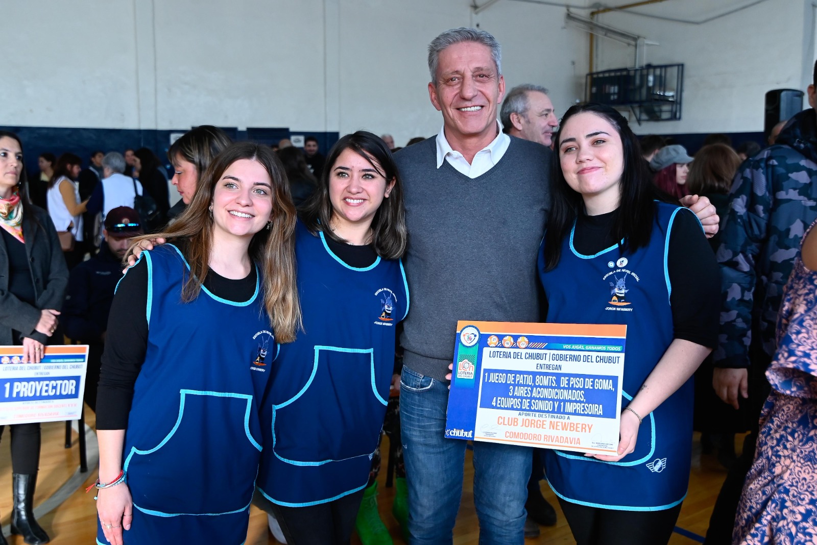 Las instituciones que recibieron equipamiento fueron: Club Jorge Newbery, Casa del Niño, Aeroclub, ACARA; Asociación Civil Patria Sí, Asociación Bomberos Voluntarios de Rada Tilly, Bomberos Voluntarios de Comodoro Rivadavia, Asociación Civil Ciudadanos en Acción, Asociación Civil La Hora Felíz, Asociación Italiana de Socorros Mutuos, Asociación sin fines de lucro Infinito Espacio Urbano; Calafate Rugby Club; Asociación de Fútbol de Veteranos; Asociación Vecinal Las Orquídeas; CAF María Goretti, Centro de Jubilados y Adherentes Barrio Gobernador Fontana y Standart Sur; Centro Luis Braille; Cooperativa de Trabajo Sol de Patria; Cooperativa Manos Solidarias de Las Orquídeas; Cooperativa 6 de Enero; Cooperativa Victoria; Escuelas N° 133, 16, 217, 301, 416, 4.402 y 521 además de la N° 126, 133, 155, 172, 221; 614, 7.715, 797, 407, 4.402 y Supervisión Técnica de Educación Secundaria Región VI; Federación de Comunidades Extranjeras; Instituto Superior de Formación Docente 810; CAF Los Grillitos, Oficina de Adopciones; Desarrollo Social y Oficina de Asistencia Técnica del Ministerio de Familia; Mutual de Trabajadores de la Construcción; Club Laprida del Oeste; Oeste Juniors; Club Deportivo Portugués y Asociación Cerro Chenque.