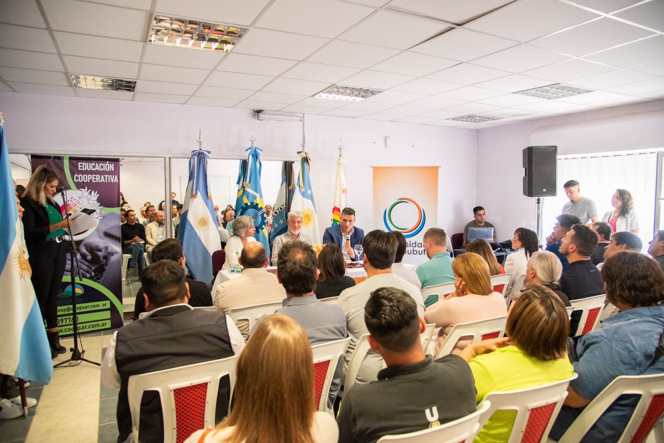 El intendente de Sarmiento, Sebastián Balochi, participó de la firma del contrato de comodato entre la Universidad del Chubut (UDC) y la Cooperativa de Provisión de Servicios Públicos de Sarmiento Limitada (Coopsar) para el uso del edificio de la Escuela de Capacitación por un plazo de 10 años, con el fin de desarrollar el dictado de carreras, diplomaturas e investigaciones.