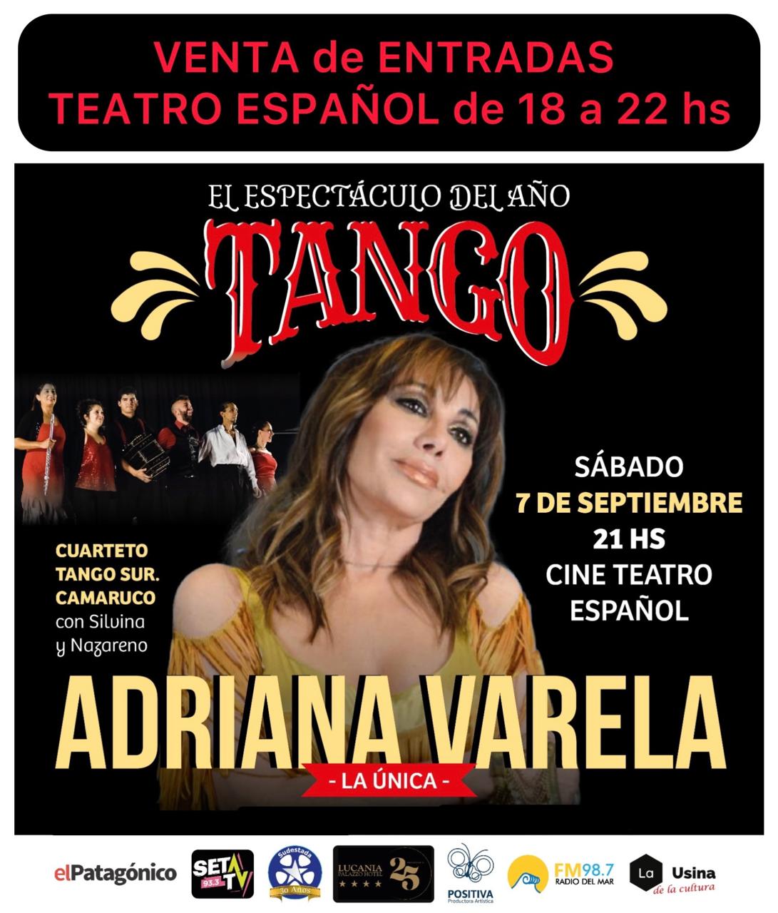 El sábado 7 de septiembre Adriana Varela, la voz femenina más destacada del género, se presenta en el Cine Teatro Español de Comodoro Rivadavia.