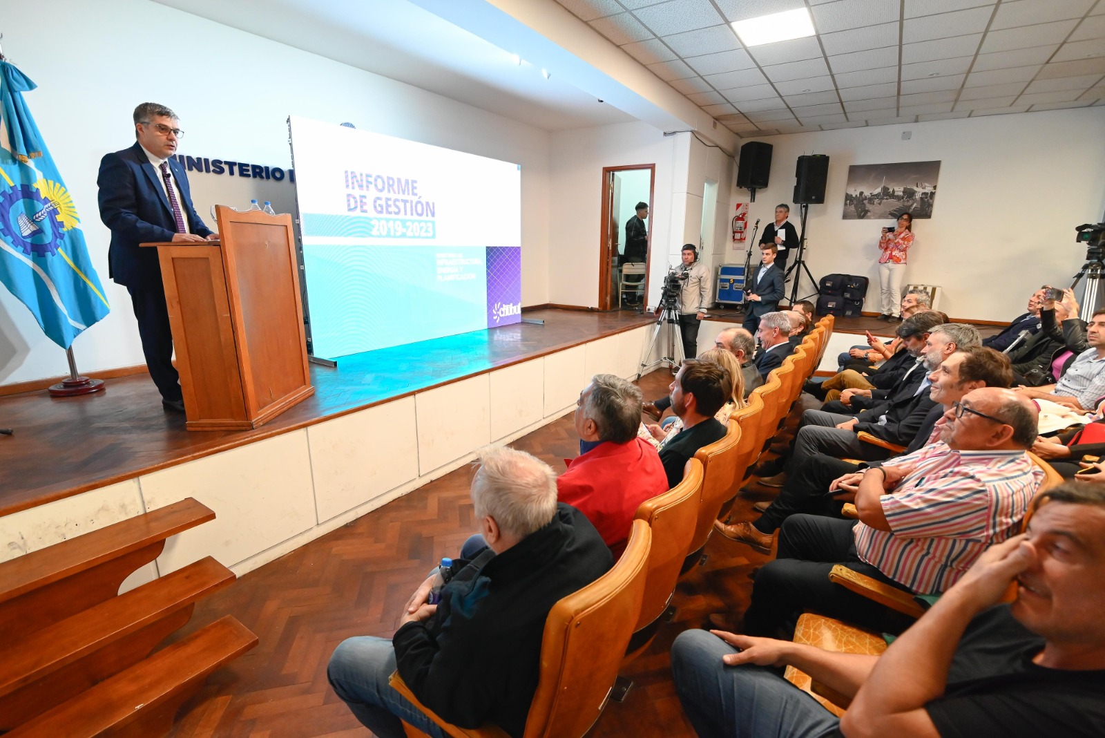 Este jueves por la tarde, en el Auditorio «Héroes de Malvinas» del Ministerio de Educación de la capital provincial, el gobernador del Chubut, Mariano Arcioni, acompañó la presentación del balance de gestión llevada a cabo por el ministro de Infraestructura, Energía y Planificación, Gustavo Aguilera. Esta presentación es la cuarta entrega del Ejecutivo provincial, siguiendo a los informes previos proporcionados por las carteras de Educación, Economía y Salud.