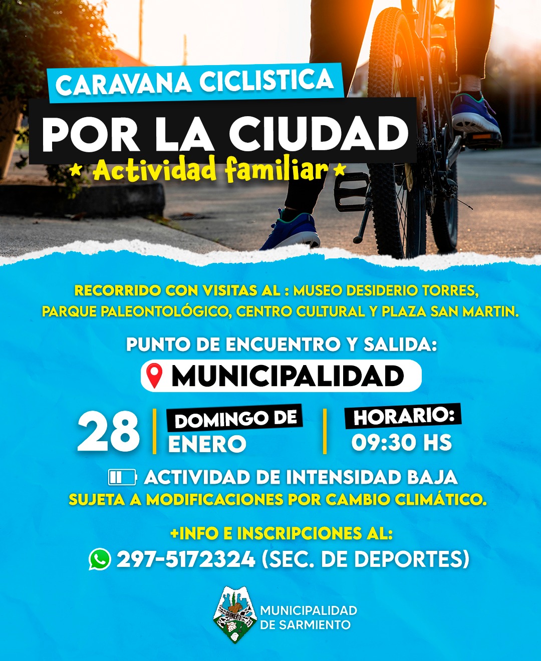 La secretaría de deportes de la Municipalidad de Sarmiento presentó la «Caravana ciclística» por la ciudad, una actividad para toda la familia que se llevará adelante el domingo 28 de enero a las 9:30.